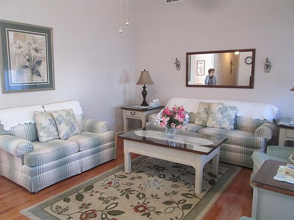 Immaculate Rancher in nice neighborhood with sidewalks and city utilities. Covered Front Porch leads to living room with vaulted ceiling, hardwood oak flooring, kitchen w/vaulted ceiling, recessed lights and hardwood floors, clean line white cabinets, breakfast bar, appliances, dining area, large pantry closet, laundry room w/washer and dryer, 1 car attached garage. A hall bath w/tub/shower and tile floors. Features 3 nice size bedrooms with carpet. The master has generous size walk in closet and private bath with shower. Sliding door in dining room leads to a rear deck with electric retractable awing, a concrete patio, large outdoor shower enclosure. Yard is large enough for a pool.