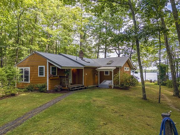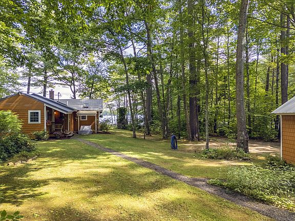 Discover the ultimate private retreat on one of the most coveted lots on Little Sebago Lake! This stunning property boasts 420 feet of pristine water frontage with 180-degree panoramic lake views. Perfectly situated for year-round enjoyment, this meticulously maintained, single-level home offers a seamless blend of charm and modern comfort. Step inside to an open-concept layout featuring 3 bedrooms and 2 full baths, designed for effortless living. The cedar shingle exterior and metal roof showcase durability and classic beauty, while the oversized detached garage with a second-story space provides endless possibilities for storage or a future bonus room. The outdoor spaces are truly unmatched. Host family and friends at the original stone fireplace, an ideal centerpiece for entertaining under the stars. Enjoy your morning coffee or evening sunset on the covered back porch, soaking in the mesmerizing water views. Plus, the property includes two charming bunkhouses, a potting shed for the garden enthusiast, and a convenient storage shed by the water for all your lake gear. Whether you love summer on the lake or winter activities like snowmobiling and ice fishing, this property is a four-season paradise. With an irrigation system in place, your gardens will always thrive in this tranquil haven