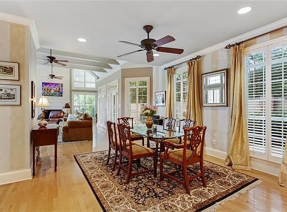 This unique home offers a blend of soft contemporary soaring ceilings with illuminated beams with elegance. Very open floor plan. Lots of windows throughout all with plantation shutters. Private downstairs master suite with screened-in porch. All closets are custom fitted. Over-sized garage with storage shelves. Whole house generator. Professionally landscaped. Immaculate inside and out. Kinder Lane is one of River Ridge finest cul de sac streets!