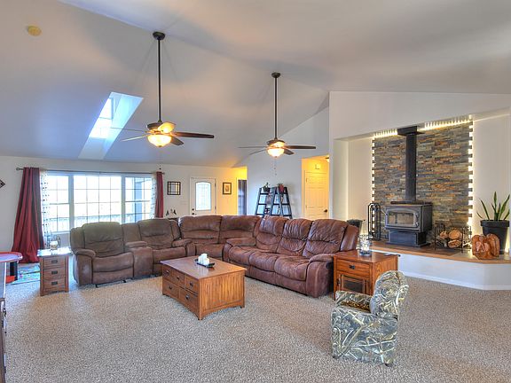 Peace and Quiet on this Ranch style home on 2 acre parcel. Great room w/vaulted ceilings, wood burning fireplace.Gourmet kitchen w/granite countertop, island w/elect cooktop, with 18 inch floor tiles. Skylights, light and bright, huge rooms. Wonderful private covered patio. Natural landscaping with trees and privacy.