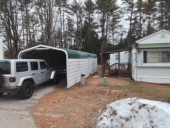 Generous sized home in 55+ community with Carport, Storage shed with electricity, woodshop with electricity and adjacent to the Suncook River. There are additional rooms that could be used as an office or a guest room. Add-ons provide extra space and cosmetic updates will make this a cozy home on the edge of the woods. Interior photos are forthcoming, but it is available to be seen now.