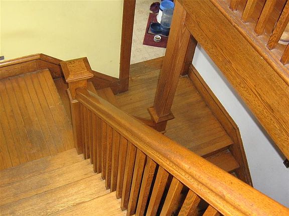 Grand older Colonial with hardwood floors, natural woodwork and two corner fireplaces. Living room, dining room, den, kitchen, half-bath, laundry room down. Four bedrooms and full bath up. Nice location, level yard, detached two-car garage.