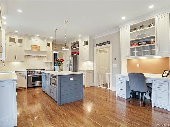 Welcome to the desirable Green Farms neighborhood of Westport! This pristine home is nestled on a quiet cul-de-sac and is walking distance to Greens Farms Elementary School, Starbucks, and Barnes & Noble and is only minutes from town center. This home, newly constructed in 2015, is finished on all four levels. The Gourmet kitchen features Carrara marble countertops, and stainless steel appliances including a 6-burner gas Wolf range. A cozy family room accompanied by stylish custom built-ins, accent beams, and wood burning fireplace are open concept to the kitchen. An ornate dinning room sits adjacent the formal living room complete with coffered ceiling a second fireplace (gas). Upstairs a grand master suite features trey ceiling, two over-sized walk-in closets and a spa-like master bath. The second floor also includes three more bedrooms (with 2 full baths) and laundry room with storage and closet. Finished fourth floor with full bath allows for a fifth bedroom and bonus room. The fully finished lower includes another full bath and plenty of open space which could provide space for arts and crafts, gym, theater room, and more. sale subject to homeowners finding suitable housing. Owner/Agent
