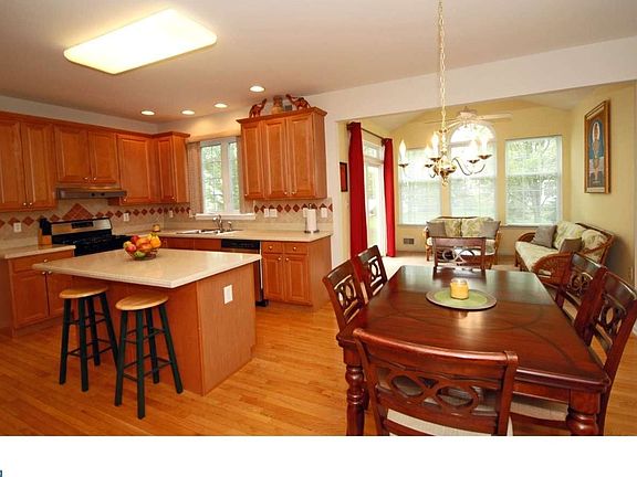THE SEARCH IS OVER! Welcome home to this spectacular FIVE bedroom, FOUR bath EAST-facing home nestled on a cul-de-sac on an oversized premium lot! Occupied by the original owners who opted for nearly every conceivable upgrade when building, this home has been meticulously cared for and maintained. Impressive curb appeal begins with a manicured lush landscape with specimen trees and an elegant brick faade. Step inside and prepare to be wowed by the spacious bright open floor plan! A soaring foyer with two coat closets is flanked by sophisticated formal rooms with decorator details like hardwood floors, bay windows, tray ceiling, recessed lights custom moldings. A welcoming EXTENDED family room boasts floor-to-ceiling windows flanking a handsome fireplace with custom marble surround and a lovely mantle. The heart of the home is the kitchen! Sure to delight the most discerning chef, this well-designed space offers solid-surface counters, hardwood floors, stainless steel appliances, custom tile back splash, recessed lights and rich 42 maple cabinetry. A bright sunroom lined with windows expands this space and provides an ideal spot to enjoy coffee and the morning paper or curl up with a book in the evening. Just off the sunroom, sliders open to a multi-level patio that gracefully wraps around the rear exterior of the home. This will surely become a favorite spot for outdoor dining and entertaining. There is more to love with a first-floor bedroom or office AND a full bath loaded with upgraded tile, faucets and fixtures- ideal for long-term guests! This desirable model also features French doors leading from the living room to a spectacular conservatory. Sunlight pours into this space through endless windows! Beautiful hardwood stairs lead to a second floor master retreat. This tranquil space is enhanced by an airy vaulted ceiling with fan, two walk-in closets a luxurious en suite bath with upgraded tile, faucets and fixtures, plus a large soaking tub and a linen closet. Three additional bedrooms, two with lovely bay windows, and a sparkling upgraded main hall bath complete this level. There is more to love with a beautifully finished basement with 9ft ceilings, wired for a home theater, a FULL bath and plenty of space for recreation. There is also ample storage AND even rough plumbing for a wet bar or kitchen! Lucky new owners will also appreciate the convenience of central vac, first-floor laundry, underground sprinklers in front back yards.