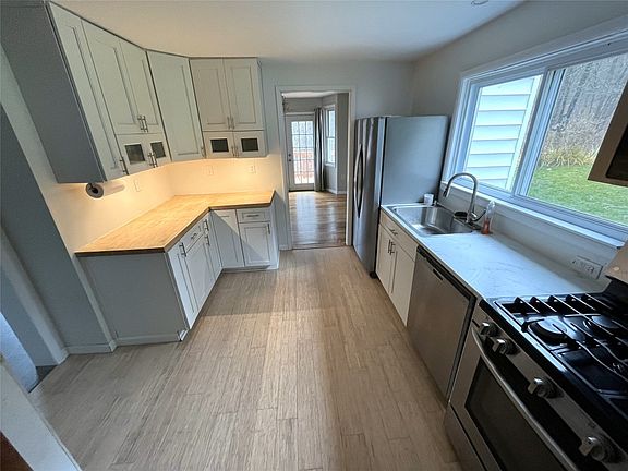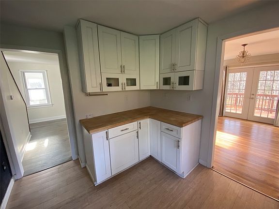 CHECK OUT THE GREAT NEW PRICE! Situated on a sprawling acre of land, this home, surrounded by lush greenery and mature trees, offers a serene retreat from the hustle and bustle of everyday life. But don't worry, you are still close to everything in town. The spacious living room boasts hardwood floors, creating a seamless flow to the adjacent dining area. The 1st floor includes a beautifully remodeled full bathroom, as well as French doors leading to the deck, a perfect spot for enjoying the nature surrounding this home. The newly updated kitchen boasts stainless steel appliances and butcher block countertops. Head upstairs, where you will find three bedrooms, a massive bonus room, as well as another full bathroom featuring a clawfoot tub and a lovely, tiled floor, this is just another wow factor for this home. Don't wait, call your favorite agent today!