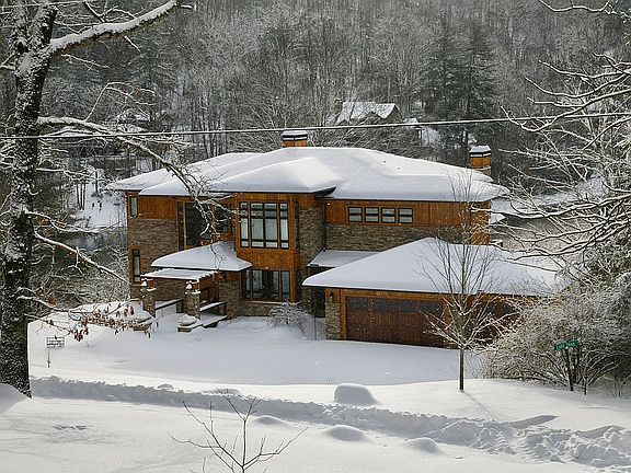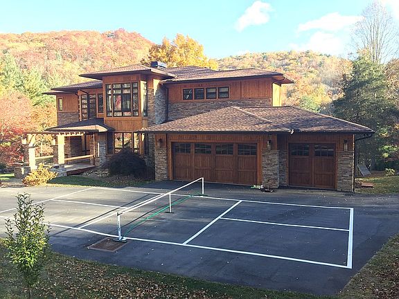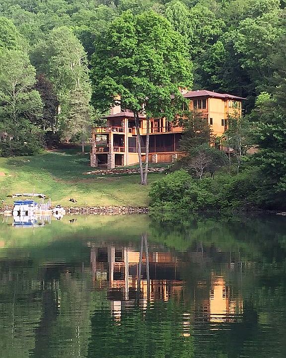 Craftsman / Prairie style house on the best lot on Lake Glenville. The only house on the lake with a clear/direct view of the main waterfall. Too many extras to list here