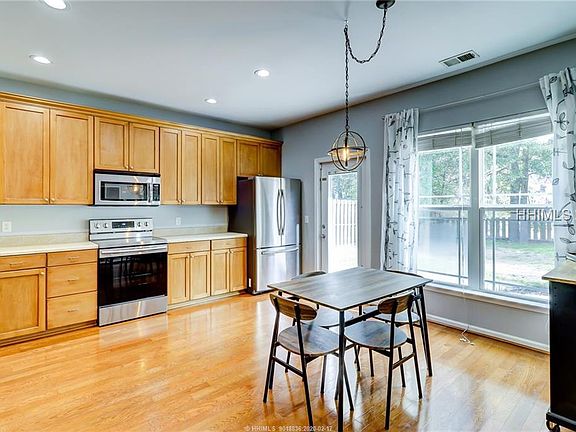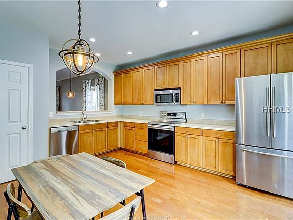Spacious Seabreeze model in Palmetto Pointe on cul-de-sac with fenced yard and lagoon views! Eat-in kitchen features new stainless appliances and 42-inch cabinets with crown molding! Oversized owner's suite offers a vaulted ceiling, walk-in shower with separate garden tub, and spacious walk-in closet! Enjoy wood, tile, and carpeted floors, covered front porch, large rear patio, and great spacing between homes! Walk to Pritchardville Elementary and Wendy's with Publix coming soon! Downtown Savannah is only a 20-minute drive! Bring a serious offer today!