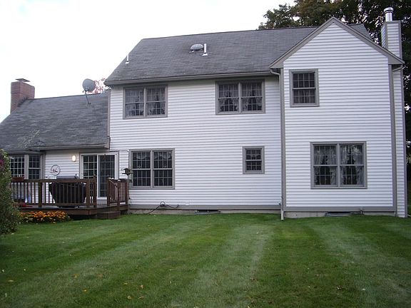 Young Colonial in desirable neighborhood w/views of reservoir has 4-5 Bedrms,3.5 bath features a great open floor plan, lots of closets, detailed woodwork, gleaming hardwood Floors throughout house. Converted gas fireplace with built -ins, high ceilings Newly remodeled chefs kitchen with custom cabinets, large island, professional appliances, granite countertops countertops. Sec.syst .& indoor sprinklers. The grounds of this property are immaculate & peaceful, w/trees, gardens, irrig.system, large 2 level stone patio with fire pit, walkways and tiered garden areas. Lg 2 car garage,w/high ceiling. Finished heated basement with dehumidifier. Plenty of storage in basement and attic. 3 zoned heat pump/ AC., New Anderson construction windows throughout home.