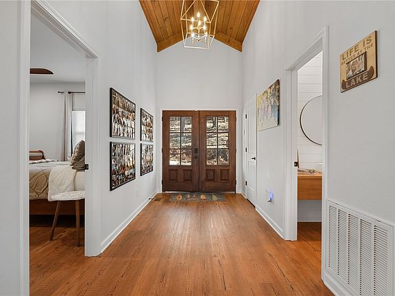 Modern Mountain Harbor retreat with room for everyone- Custom-built in 2022 by Lawrence Custom Builders and packed with luxe finishes, effortless style, and lake gateway vibes. This 4-bedroom, 4.5 bath home is a rare gem in the covered Harbor South neighborhood, offering a thoughtful layout with three spacious primary suites- two of which are conveniently located on the main level. With accommodations for up to 22 guests, there's no shortage of space for hosting family, friends, or vacationing in style. Step inside to soaring wood-paneled ceilings, warm hardwood floors, and a dramatic open-concept living space that flows seamlessly from the chef's kitchen to the cozy living area- complete with a sleek electric fireplace and wall of windows that frame the surroundings trees. Quartz countertops, custom cabinetry, designer lighting, and a built-in wet bar add just the right touch of elegance. Fully furnished, minus a few sentimental pieces, this home is move-in ready.