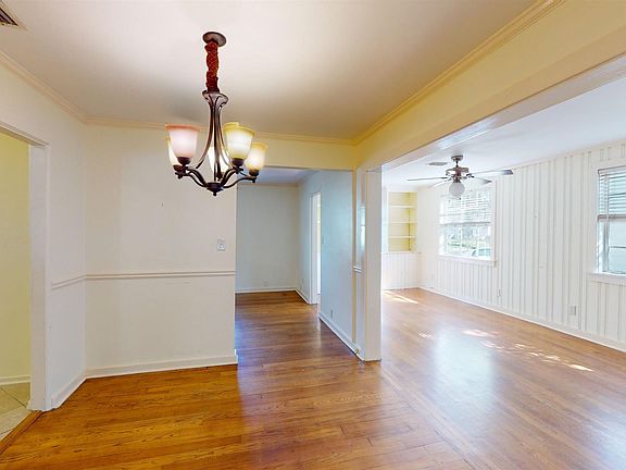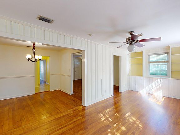 Wonderful home in Springhill Manor. This home has two large living spaces and a split bedroom plan. There is a nice-sized primary bedroom with an attached bathroom. The wood-paneled den has great built-ins. Pretty hardwood floors and lots of windows with great natural light. There is a deck in the backyard overlooking the fenced yard. The separate garage has tons of storage. The home is being sold as-is where-is with no warranties expressed or implied.