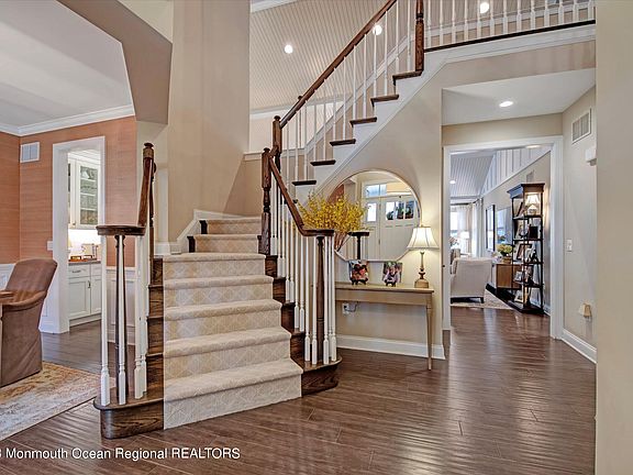 Perfection is the word to describe this extended ''Newton'' model in the sought out active adult community Regency @ Holmdel. This home is abundant with custom moldings and upgrades. The two story foyer offers views of the elegant stairway and formal dining room. The well designed kitchen features an adjacent breakfast area, a center island that overlooks the expansive great room, SS appliances, integrated sub zero refrigerator and wine cooler. Butlers pantry boasts double French doors and designer pantry. The master bedroom includes a tray ceiling, walk-in closet, private bath, shower with dual jets. The upper level offers two bedrooms w/ custom closets and access to the jack-and-jill bath, private study, and loft that overlooks the great room and two story foyer. The finished basement has vinyl wood plank flooring throughout and an oversized storage area that has rough in plumbing for a future full bath. The 500 sq. ft deck with sunset views is a great space to relax. Home also features a two car garage w/ epoxy floors. Located n the Bell Works campus and close to all transportation.