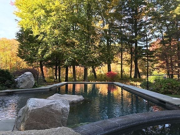 An outdoor enthusiast's paradise! The thoughtfully landscaped 7 acres boasts approx. 1,000' of riverfront with dock and boat on the Charles River. Privately wooded and setback along with tranquil open space surrounding a salt water walk-in pool, lap pool and spa defines this must see property. The 6 bedroom, 4.5 bathroom Antique Farmhouse Replica features a heated half court basketball and fitness center along with climate controlled wine cellar, open kitchen and wet bar in the grand living room that sets up perfectly for entertaining. The elements and design of a farmhouse reproduction is highlighted by knotty pine beadboard, wide plank pine flooring, repurposed antique craftsmanship, and free standing gas/wood stoves; but with all the modern day comforts of radiant floor heat of two bathrooms, electric car charger, built-in speakers, and luxury appliances. Main entrance, mailing address and additional land at 35 Yorkshire Rd, Dover.