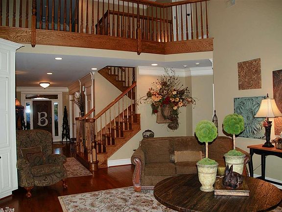 Excellent floor plan for family living & entertaining. Gourmet, eat in kitchen offers a hearthroom. Slab granite, stainless appliances, breakfast bar, 2 fireplaces, high ceilings, custom doors and moldings. Mst suite, and guest room/office & full bath on main level. 3 bedrooms and bonus room (or 6th bedroom) upstairs with 2 jack-n-jill baths and loft sitting area w/wall bookcase. Beautiful hardwood floors throughout main living, travertine tile in mst bath. 2 Laundry rm (one each floor).