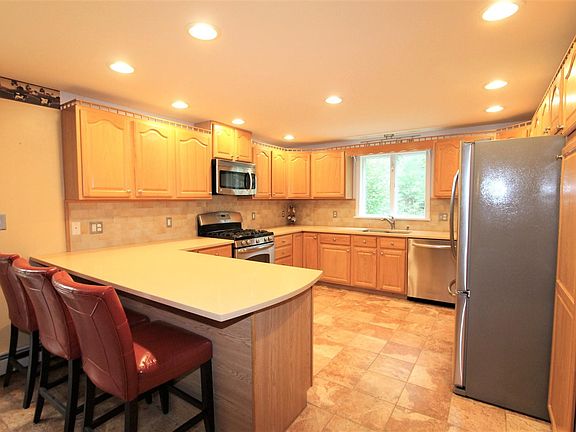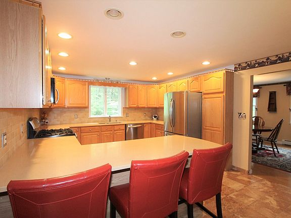 Looking for a private, rural setting at the end of a cul-de-sac neighborhood? Nicely maintained 3 bedroom 3 bath colonial with 2 car attached garage sits back in the woods offering amazing privacy all around. Main floor offers a beautifully maintained eat in kitchen, with loads of cabinets, solid surface counters, breakfast bar, tile flooring and stainless appliances. You'll also find a large dining room for hosting holiday gatherings, a spacious family room with cathedral ceilings and gas fireplace, 1/2 bath and separate laundry room. Off the kitchen you'll find a large screened porch overlooking your backyard oasis with Koi Pond. The 2nd floor boasts a master bedroom with 3/4 bath, 2 additional bedrooms and a full bath. Also on the 2nd floor you'll find the convenience of tons of walk in storage over the 2 car garage. Full basement with a finished area for a home office or playroom and plenty of room for future expansion. Located close to Country Pond and the Newton Town Beach, and not far from Route 125 restaurants and shopping! Make your appointment today!