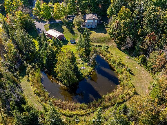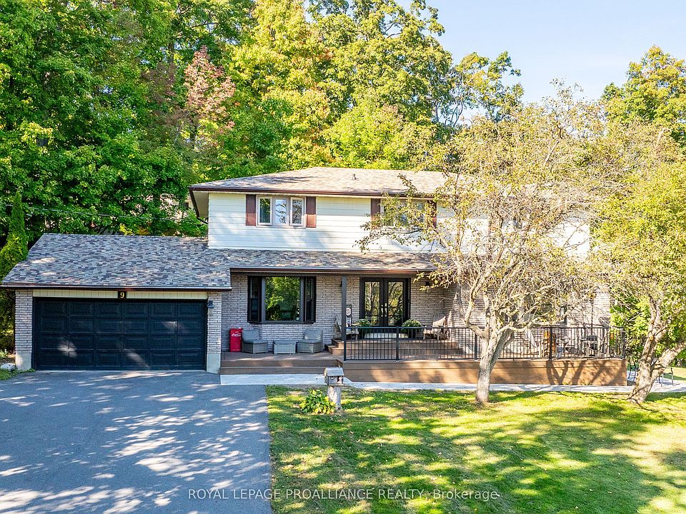 Five acres. Detached workshop. Private pond. Endless Updates. Welcome to 9 Leanne Avenue, a private retreat just minutes from town. With no neighbours on one side, a naturally fed pond that attracts deer, herons, turtles and more, and total peace and quiet, this is where you can truly slow down and enjoy space to breathe inside and out. In winter, the pond becomes your own skating rink, while in summer it's a front-row seat to nature. The brick and aluminum exterior is paired with a composite front deck and wood back deck, perfect for morning coffee, family barbecues, or simply enjoying the outdoors. Inside, the main floor features vinyl plank flooring, a bright kitchen with stainless steel appliances and plenty of storage, a large office, and a family room anchored by a cozy gas fireplace. Upstairs, four bedrooms offer space for the whole family, including a primary suite with double sinks, a stall shower, and a walk-in closet, plus the convenience of second-floor laundry. The lower level provides a complete in-law suite with its own bedroom, living room, 3-piece bath, and walkout; ideal for multi-generational living or hosting extended family and guests. Thoughtful updates give peace of mind, including a new septic (2024), water softener (2025), paved driveway and armour stone landscaping (2023), composite deck (2022), new floors (2021), and front windows and doors (2022). A Generac generator, gas BBQ hookup, and workshop round out the features. With privacy, nature, and space for family, 9 Leanne Avenue feels like home the moment you arrive.