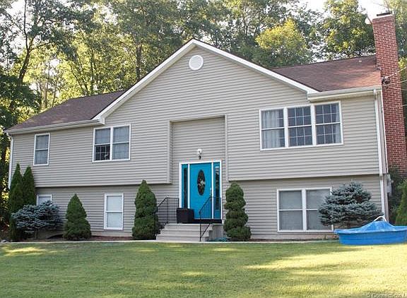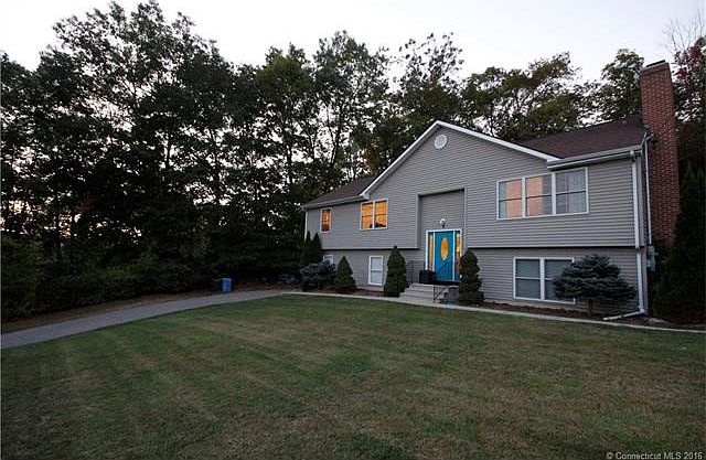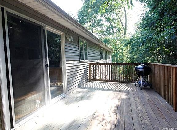 Newer 3 BR, 2.5 bath raised ranch nestled on almost a half an acre with views of Trading Cove and Mohegan Sun offers open floor plan with cathedral ceilings, living room with brick fireplace, dining room with slider to deck and spacious kitchen with breakfast bar, master bedroom w/ full bath and walk-in closet, spacious lower level family room w/ hearth fireplace and half bath. CENTRAL AIR and 2 car garage. Close proximity to Subase, EB, Pfizer and casinos.