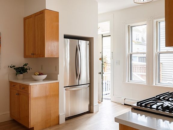 Nestled between Harvard, Central, Kirkland, and Inman Squares, 9 Leonard Ave is a beautifully updated 2 bedroom with the all important "extra room" downstairs. The home features newly refinished white oak hardwood floors, high ceilings, and oversized windows. The south-facing living room has period mouldings, a bow window, and original “wavy-glass” windows. The spacious dining room includes a bay window and an opening to the kitchen. The cook’s kitchen offers maple cabinetry, white quartz countertops, recessed lighting, and stainless steel appliances, with a tucked-away laundry nook. Two bright corner bedrooms separated by a timeless bathroom with radiant heated Carrera marble floors round out the floor. The lower level offers flexible space, perfect for an office or playroom and has access to shared storage and the systems. A recently renovated terraced backyard provides beautiful space for outdoor dining. Conveniently close to Whole Foods, restaurants, cafes, bike paths and transit.