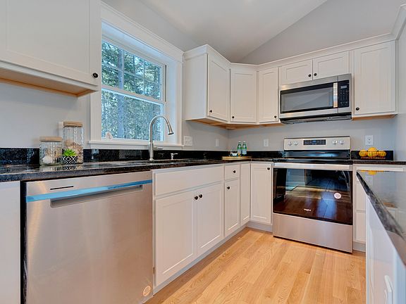One level living at it's best! Newly built ranch home offers cathedral ceiling in kitchen, dining & living area with one wing of the home boasting a generous primary bedroom with ensuite bath and other wing has 2 bedrooms with full bath. Beautiful white kitchen cabinets with granite counter tops, oak hardwood floors throughout living area. Both bathrooms have granite counter tops and tiled floors. The home is heat with a wall hung boiler and heat pump for heating and cooling. Oversized shed in back yard for all your equipment. Great location across from the high school and popular Libby Hill trail system. Must see! Call today for your private showing.