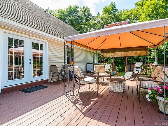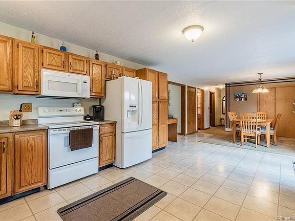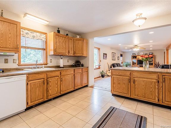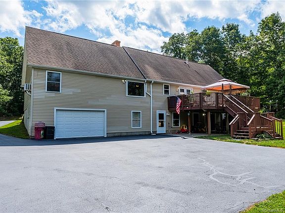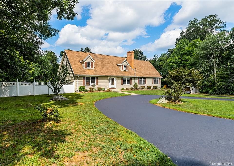 Spacious 2688 Sq. Ft. Cape Cod on 9.35 Acres, vinyl siding, 1st floor master bedroom suite, open kitchen, dining, living room with breakfast bar, recessed lighting. Formal living room w/fireplace, 2 wood-stoves. Modular built in 2002 and right portion of home is stick built addition. Potential to expand from living room w/stairs to currently unfinished 27x26 attic which was planned for 4th bedroom but never finished. 5 Zone heating, 1st floor laundry, over sized 1 car garage, 27x26 w/walk-out unfinished basement. R120 zone, owner believes lot can be split as there is another lateral for sewer line. Cul-de-sac, detached outbuildings. If outdoor adventures are what you like, plenty of room to ride, walk, hike and more! Town drainage ROW to right front of property. Listing agent is related to owner. Upstairs office is unheated.