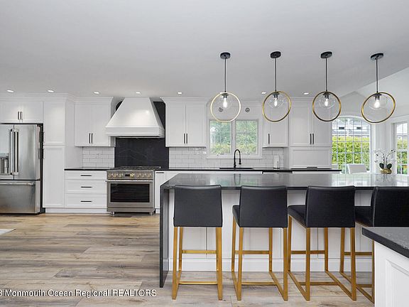 Absolutely Stunning fully renovated ranch features 3 bedrooms and 3 custom baths! Open floor plan with oversized kitchen which features custom cabinetry, huge center waterfall island with upgrades quartz countertops and seating for 6. Top of the line stainless steel appliances, 36in stove, wine fridge and beverage center. The gourmet kitchen overlooks a grand family room with vaulted ceilings and custom ceiling beams and fireplace. Luxury vinyl flooring throughout, first floor laundry and closets galore! Luxury master bedroom suite with private ¾ bath with oversized shower, glass shower doors, double vanities. Walk in closets. Finished basement with guest suite, ½ bath and bar plus plenty of storage! Huge private entertainers' yard with custom in ground heated salt water pool, pavers.