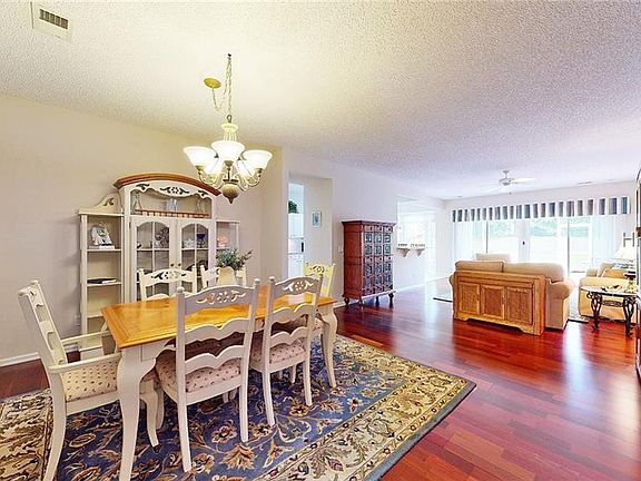 Pride of ownership abounds in this immaculate Heron model set on quiet cul-de-sac. Home boasts Brazilian cherry wood floors in main living area & den/office. Open concept LR & DR. Sunny kitchen w/ white cabinets, granite counters, tile backsplash, SS appliances & breakfast nook w/ walk-in bay. Double sliders lead to large screened lanai overlooking mature trees & landscaping providing exceptional privacy. Owners suite has huge walk-in closet plus full bath w/ soaking tub & shower. Lovely guest BR & guest bath w/ granite vanity. Spacious laundry room w/ cabinets & ample storage. Extended garage w/ epoxy floor & workroom. Newer roof & new A/C.