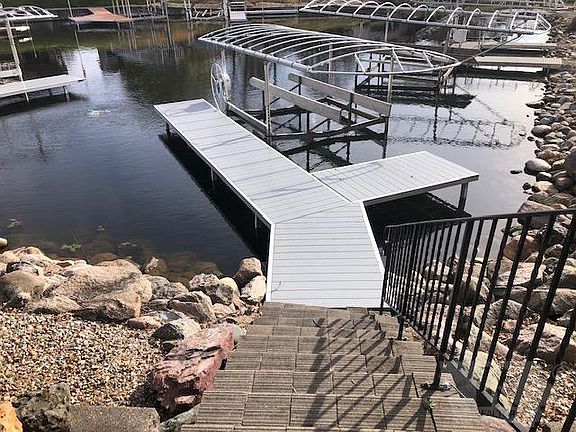 JUST LISTED this Beautiful home! Move-in ready with open floor plan. Large living room w/brick fireplace and built-in storage/display space. Beautiful Kitchen w/eating bar. Patio doors off spacious Living room to large 4 season room overlooking your backyard w/permanent private dock on the canal. You get lake access at greatly reduced price from lakefront property! Electric Motorized Boat lift included! Other features include: Master Suite, Large Lower Level Family room with walkout to patio/walkway to Dock, Lower Level Bonus Room and bathroom. Attached double garage. This is a Must See! Perfect for year round home or 2nd home getaway! Call for your appointment to view! Eff 5/12/2020: Owner has just decided to include the 20ft Misty Harbor Pontoon Boat! 11 passenger with 11 life jackets! Boat Trailer also included!