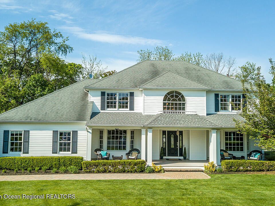 Spectacular colonial in Northern Tinton Falls! This picturesque property situated on a cul de sac features an open floor plan that will check all your boxes! Inviting front porch opens to 2 story foyer with hardwood flooring throughout and spacious room sizes. Updated eat in kitchen w/ Andersen sliders leads to paver patio with gas grill, outdoor fridge and heated salt water in ground pool on parklike setting. The great room w/ gas fireplace is open to the expansive kitchen featuring center island, granite countertops, stainless appliances w/ beverage cooler. First floor laundry and private home office/bedroom complete this space. The 2nd level features hardwood flooring throughout. Three additional bedrooms all offer spacious room sizes. Finished lower level with full bath is an additional bonus space offering even more storage. With whole house generator, irrigation system and prime location to major transportation, beaches and shopping this is not to be missed!