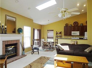 Carefree single floor living in this exceptional lavishly-upgraded end unit condo sited on premiere deeded corner lot! Dramatic open ranch layout w/soaring skylit cathedraled ceilings in expansive west-facing sun-drenched greatrm anchored by fp, and in ceramic-lined fully-equipped cherry kitch w/tall cabinetry. Spacious cathedraled master greets w/sweeping double door entry & relaxes w/private spa-inspired double bowl bath. Amenity-rich w/gas fp, recessed lighting, deck & sunsetter. Gorgeous!