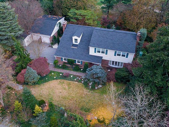 Rare opportunity to enjoy living in beautiful Sunnybrook. This large home backs directly to Hillendale Country Club's Golf Course and is located on a private cul-de-sac. Four oversized bedrooms with hardwood floors are on the second floor with two full baths. The Master Bedroom has its own marble Wood burning Fireplace. The master bath has a custom marble sink. Surrounded by expansive gardens and hidden pathways under large trees, around fish ponds and behind a large patio, you will love the escape these gardens create. Specimen trees and perennials throughout the property. Hardwoods are on both the first and second floor. A slated Foyer entrance is custom painted with a garden that will bloom all year long. The Living Room is large and boasts a gorgeous marble fireplace and a large bay window. Large separate formal Dining Room. The large country kitchen has a sitting area and a study with its own gas fireplace, oak lined wall, custom shelving and a pocket door for privacy. The Dorothy Draper inspired powder room with a custom marble sink is located just off the family room. The entire house has central vacuum, and a finished attached garage where the laundry is located. The kitchen has all stainless steel newer appliances and Corian countertops. Large sliders lead to the huge back brick patio that allows for outdoor entertainment and bird watching. The Front yard is open for throwing a ball; the pine on the side of the house has natural seating underneath that allows for cool talks under a delightful Fir. The extra garage will set up the car fanatic with its expansive work area and a second floor, great for storage or make into a studio. The large clubroom is finished with repurposed Barn wood and has a woodburning fireplace, a bar with an antique marbletop breakfront, and a work room. Heat pump and radiant heat in ceilings. Whole house generator! You must see this house to truly appreciate all it has to offer!