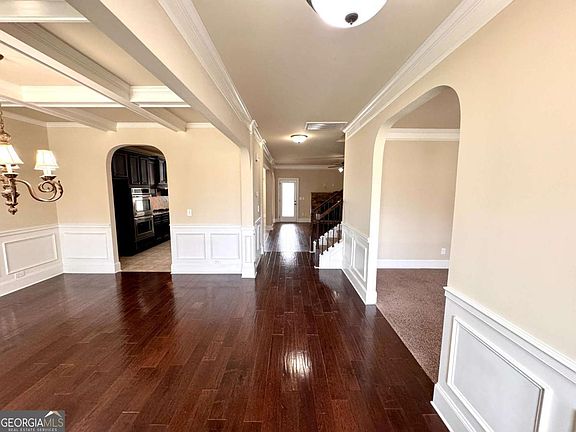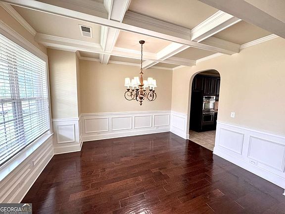 Welcome to this open and spacious traditional home filled with charm and thoughtful upgrades. From the moment you step inside, you'll notice the rich hardwood floors and bright, inviting spaces that make this home perfect for both everyday living and entertaining. The main level offers a formal dining room with elegant wainscoting, a formal living room, and a cozy family room featuring a stunning stone fireplace with convenient rear stairs. The chef's kitchen is complete with granite countertops, a breakfast bar, and a sunny breakfast area that flows seamlessly into the family room. A main level bedroom with a full bath makes the perfect guest suite or office. Upstairs, retreat to the romantic vaulted master suite with a private sitting area and a bath featuring a soaking tub, separate shower, and dual vanities. Secondary bedrooms are generously sized, providing comfort for family and guests alike. Step outside and enjoy your morning coffee on the welcoming front porch or relax on the covered back porch overlooking your private, fenced backyard. The home sits on a desirable corner lot and includes a side-entry garage. Perfectly located just minutes from Publix, shopping, dining, and a variety of restaurants, this home offers convenience and lifestyle. A must-see opportunity in Acworth!