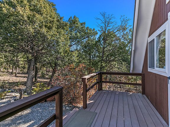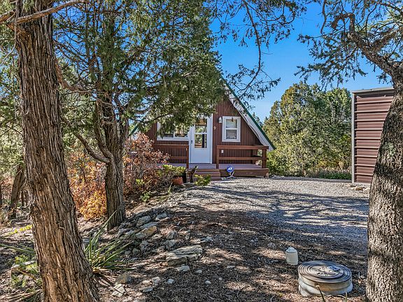 Enchanting mountain home nestled on 3.34 acres with close proximity to the national forest! This property consists of 4 separate lots, each wooded with a combination of ponderosa pine, pinon and juniper. Beautifully appointed A-frame style home with knotty pine ceiling, large walk out deck, tons of light, southern exposure, and wonderful views. Other features include: a sunroom, updated septic system, storage shed, and water service provided by Tranquillo Pines Water Co-op. Hurry, the mountains are calling!