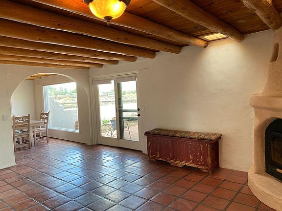 Find your "Home, Sweet Home," on Blueberry Hill! Spacious 2400 sq ft three bedroom, two bath home boasts an entertainment room, office, and a den with sunroom! Classic vigas and southwestern design. Very livable floor plan with room to spread out and relax. From the living room patio, enjoy stunning, unobstructed views of Taos Mountain across adjoining Pueblo Land. Detached two car garage with two carports. Shaded courtyard with access into the sunroom. Dog fenced for your four-legged pals.