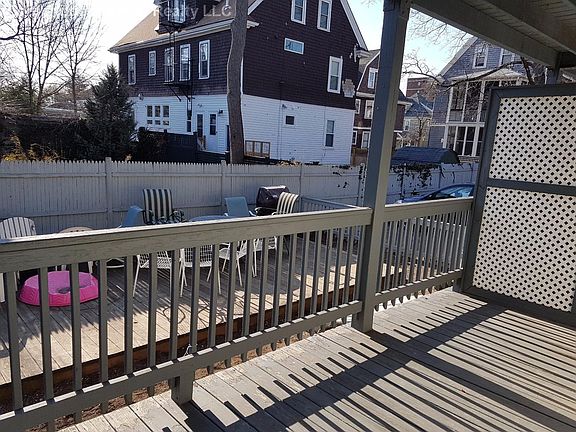 Fantastic first floor 2 bed/2 bath apartment in a multi-family house. Hardwood floors throughout, high ceilings, lots of windows, gas heating. Good sized bedrooms with closets, large living room. Back deck and backyard for outdoor space. Laundry in the basement. One off street parking is included in the rent. Pets are welcome!!