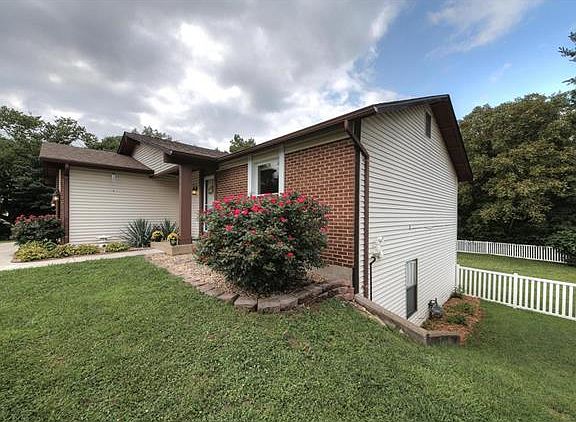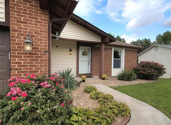 Spencer Creek~walk to park/playground & NEW covered bridge. Charming Raised Ranch home on a cul-de-sac, The Foyer is large & welcoming. A formal Living Room connects to Dining Room the floor plan open & spacious. The vaulted Great Room inviting with a wood burning fireplace & large hearth w/French doors out to deck that is private & backs to trees. The Kitchen is eat-in with a large picture window w/great natural light & the view to the backyard is Fabulous, upgrades include stainless steel appliances, new kitchen floor & countertops. Master bedroom has walk-in closet, comfortable retreat w/private patio the En Suite has double sinks, linen closet, separate tub/shower. Home has been freshly painted and ready for immediate occupancy! HWA Warranty, Roof 13, Furnace 12, 2 car garage oversized!. This home is unique floor plan offering more sq ft than typical in the area & the LARGEST master bath for the price! Don''t delay sellers have property ready! Ft Zumwalt Schools ROCK! Welcome Home!