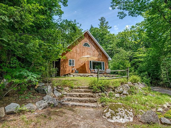 Vertical cedar plank siding visually ties together the three buildings and creates a stylish simplicity. The main home contains three bedrooms, two bathrooms and an eat-in kitchen that opens to the view and light-filled living room, a woodstove and built-in bookcases. Below, a walk-out unfinished basement provides a workshop and storage area for toys.