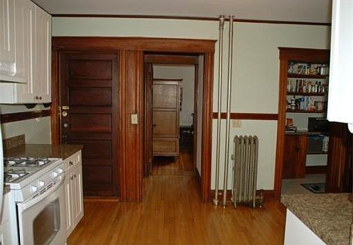 Warm and inviting with plenty of character and charm. A spacious one bedroom within walking distance to downtown. Updated eat-in kitchen with a large pantry. Natural woodwork galore, with built-ins. Entire building was renovated in 2007. Private side porch, and wood floors through-out. this is a beauty!