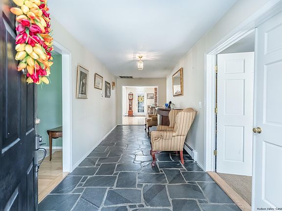 Rare opportunity to own a Sprawling Hillside Acres Ranch. This home sits on 1.25 acres right at the edge of Uptown Kingston and offers a beautiful quiet setting with a built-in heated salt water inground pool and private yard. This property includes a separate deeded half acre lot 7 Lynette Blvd. What a bonus! An oversized foyer welcomes you into this beautiful home with a traditional feel yet an updated open floor plan as well. You have a large separate livingroom and diningroom along with an open familyroom space with a brick fireplace, skylights and glassed area with space for a large table and open to the kitchen which overlooks the backyard, pool and brick patio. An additional glassed room off of the familyroom would make a perfect den, home office or guest room and has access to the back yard. The updated kitchen is perfect for the family chef with a double oven plus a third, quartz counters, recessed lighting, tile backsplash, tile flooring and loads of pantry space. An adjacent laundry/mudroom with half bath between the kitchen and attached garage is so practical. There are also four spacious bedrooms including an en suite with a walk in shower and double sinks. A unique walk up attic off the front hallway gives you plenty of extra storage space. There is central air throughout, a high efficiency boiler with 4 zones, natural gas and municipal water too. This home is approx. 90 minutes out of NYC and the NYS Thruway entrance is minutes away and close to the Historic Uptown Kingston Stockade area with great restaurants, shops and Old Stone Homes.
