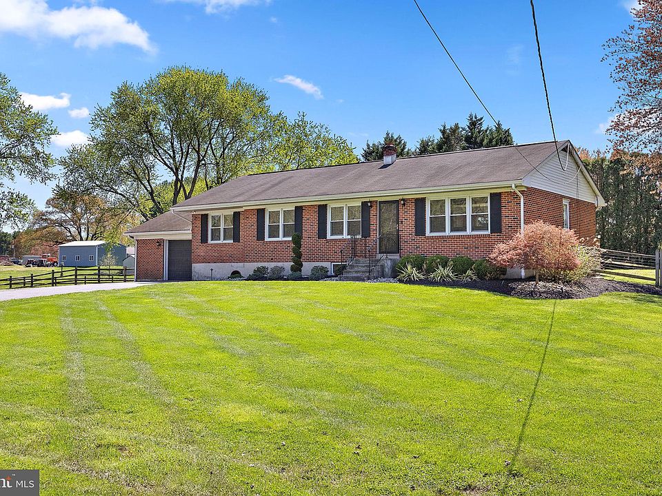 Welcome Home! This expansive brick rancher nestled in the highly sought-after Shelley Farms community! Boasting 4 spacious bedrooms and 2 bathrooms, this home sits majestically on a generous .88-acre lot with irrigation system, offering ample space for outdoor recreation and relaxation. The backyard oasis, complete with a newly fenced area and a convenient shed, provides the perfect backdrop for entertaining or simply enjoying the tranquility of nature. As you enter, be greeted by a grand living room adorned with plush new carpeting, setting the stage for cozy evenings with friends or loved ones. Prepare to be wowed by the gorgeous kitchen, featuring white cabinets, stainless steel appliances, and a breakfast bar, all illuminated by abundant natural light streaming through the new sliding glass door. Step outside onto the huge deck off the kitchen area. Retreat to the master bedroom, boasting its own private bath and direct access to another private deck—a serene sanctuary to unwind after a long day. Three additional bedrooms offer versatility and comfort and fresh new carpet, while the fully finished basement provides endless possibilities for recreation, work, or exercise. With its desirable location, modern updates, and boundless charm, this home is sure to captivate hearts and inspire dreams. Don't let this opportunity slip away—schedule your showing today and prepare to fall in love with your forever home!