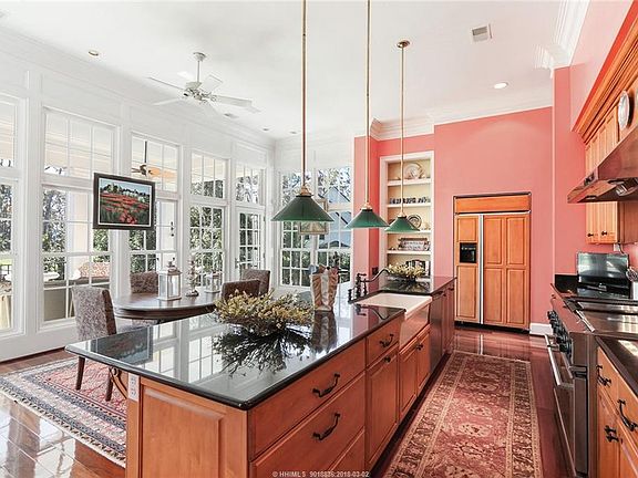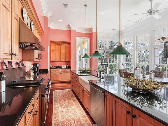 This singular home exudes charm. The stunning street appeal is reminiscent of a stroll in downtown Charleston. Exceptional detail is evident from the front fountain, to every distinctive interior detail, to the welcoming back porch on the peaceful lagoon and golf vista. Gleaming Brazilian wood floors anchor this unique livable floor plan awash in sunlight. Every room is an architectural delight. The Kitchen offering high-end SS appliances & granite counters opens to Breakfast Dining, the Family Room & the beautiful view. Bonus: Elevator convenience. Photos just don't capture the appeal.