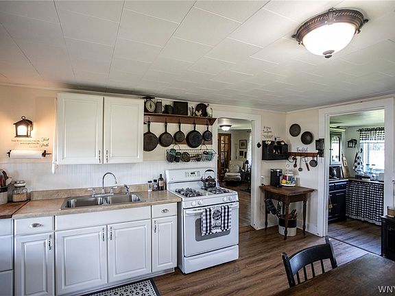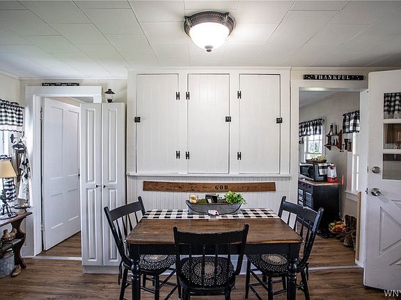 NEW ON THE MARKET! CHARMING 3+ BEDROOM, 1 BATH FARMHOUSE ON 2+ ACRES. ALOT OF HOUSE FOR THE MONEY! THE FIRST FLOOR OFFERS AN EAT-IN KITCHEN, A FORMAL DINING AREA WITH A WOODSTOVE, PLUS A SEPARATE LIVING ROOM. THERE IS ALSO AN ENCLOSED SUN ROOM WHICH IS IDEAL FOR CRAFTING OR AS AN OFFICE. A FIRST FLOOR BEDROOM, FULL BATHROOM AND LAUNDRY ON THE ENTRY LEVEL AS WELL. UPSTAIRS OFFERS A LARGE PRIMARY BEDROOM, PLUS TWO OTHER BEDROOMS. UPDATES INCLUDE SOME NEWER WINDOWS, NEWER LAMINATE FLOORING IN SOME OF THE FIRST FLOOR ROOMS, NEWER BREAKER PANEL. THE DETACHED GARAGE/BARN IS IDEAL FOR HOBBYISTS. A GREAT LOCATION WITH WALKING CONVENIENCE TO THE SCHOOL, GROCERY STORE, AND THE ICE CREAM STAND. THE OWNERS ARE BUILDING ON THEIR LAND AND HAVE PRICED THIS HOME TO SELL!