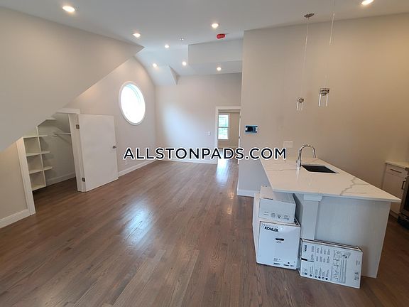 Stunning 2 bed 1 bath in Allston Modern kitchen Stainless steel appliances Dishwasher Granite counters Hardwood floors Tiled bathroom In unit laundry