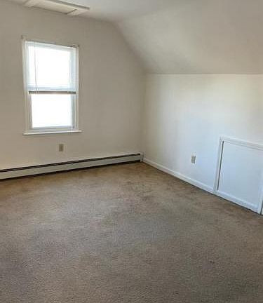 2 Bedroom unit private entrance. Bedrooms on 3rd fl. with extra large walk in storage of one of the bedrooms. Bedroom and living room wall to wall carpet all new in bedrooms. Washer dryer stackable hookup in unit available. Unit has 2 zone oil heat.