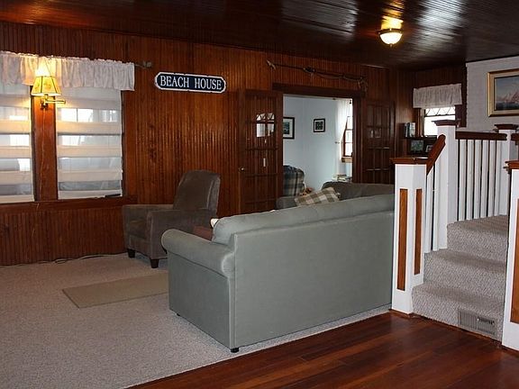 Direct waterfront, private beach access and sweeping views of Onset Bay. This stunning contemporary beach house has been completely redesigned for turnkey modern living. The main house features white oak flooring throughout and an open floor plan, highlighting the expansive ocean views with floor to ceiling windows all across the waterside of the property. Designed for indoor-outdoor living, with two mahogany deck spaces from the master bedroom and living room with direct access to the private beach. The kitchen is perfect for entertaining and boasts luxury Miele appliances, custom touch-to-open cabinetry, waterfall quartz center island that seats four with and quartz counter tops. Use the detached guest house as an extended stay or take advantage of fantastic rental returns. The two buildings are separated by updated landscaping including new sod and cobblestone courtyard. Full roof and gutter system replaced on both structures as part of the renovation.