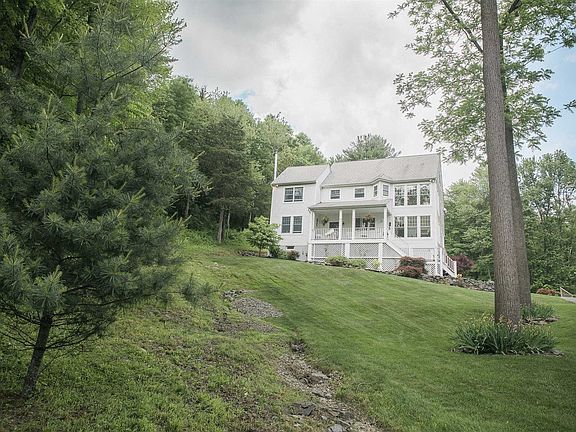 Thoughtfully designed and custom built 3 bedroom, 4 1/2 bath Colonial. Evidence of TLC, attention to detail, quality, and upgrades everywhere you look. Shining hardwood floors, spacious and bright kitchen filled with natural light, heavy trim, insulated floor, stainless steel appliances, and granite countertops to name a few. Yet, so much more! Comfortable living area with fireplace, family room leading out French Doors to an outdoor oasis: patio complete with pergola, deck, and hot tub. Breezy master bedroom with walk in closet. Master bath with granite counters, tile floor, and jetted tub. Full walk out finished basement and walk up attic! Lots of storage space. New washer and dryer. Two vehicle, oversized garage. Finished recreation room with bath above garage. Come take a look at this dramatic and delightfully unique property overlooking 2.75 acres of privacy, yet close to everything: public transportation, restaurants, and cultural locations. Bring your buyers, soak up the luxury, and be awed.