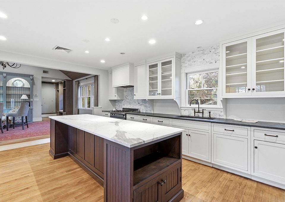 Available NOW and easy to show, this beautifully renovated Victorian is located in one of Weston's most desirable neighborhoods, with sidewalks allowing you to walk to the top-ranked schools, town center, library, and community amenities. A charming covered porch opens to an elegant foyer with period details. The main level offers a library, a chef's kitchen with custom cabinetry, high-end appliances, large island, and a dining area open to a dramatic family room with soaring ceilings, plus a formal dining room, fireplaced living room, and a guest suite with en-suite bath. The second floor features a luxurious primary suite with dressing room and spa-like bath, two additional bedrooms, full bath, and laundry. The third floor includes a spacious game room, another bedroom, and walk-in closet. Additional highlights include an oversized two-car garage with EV charger and a deck overlooking a fenced yard abutting conservation land. Convenient to commuter routes and public transit.