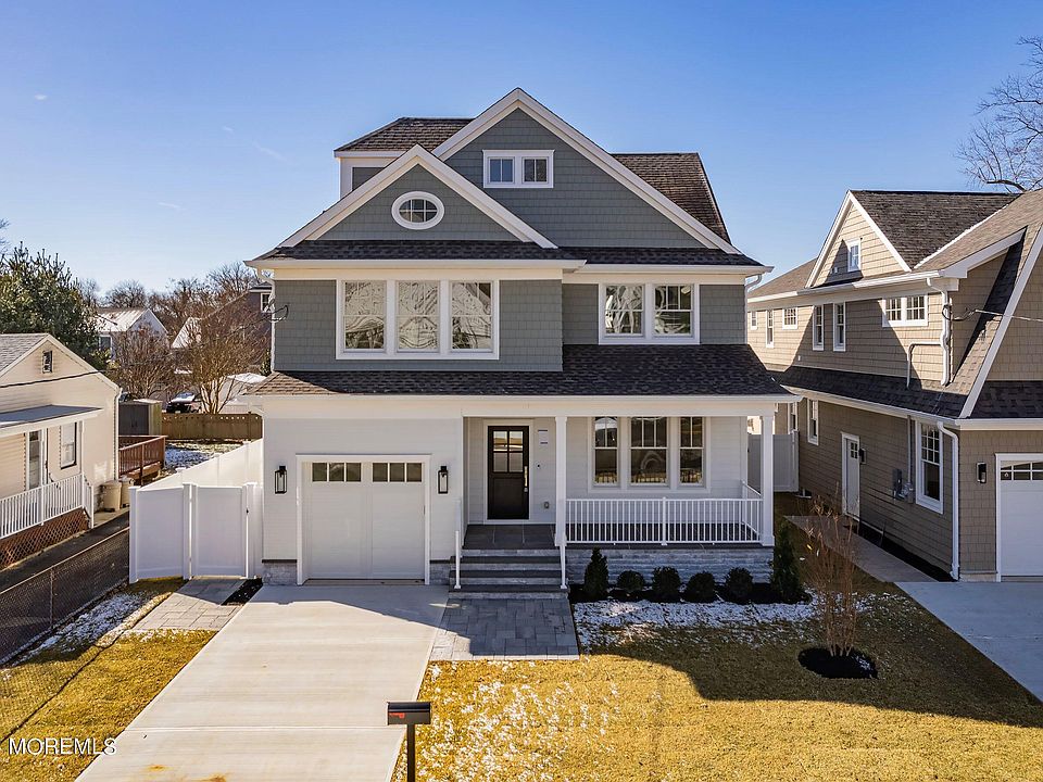 Welcome to 9 Marcellus Ave! This newly constructed home with three levels of living space is steps away from downtown Manasquan, with lots of fabulous shopping and restaurants, and is a short ride to the Train and Beach. The main level features an open floor plan, a gourmet kitchen with beautiful wood cabinets, quartz counters, stainless steel appliances, and a spacious center island. The kitchen opens to the dining room and family room with a gas fireplace and sliding glass door leading to a paver patio. A living room, powder room, and mudroom complete the main level. The home has custom decorative moldings, closets, and beautiful hardwood floors. The second level features the Primary Suite and offers a custom walk-in closet, a bathroom with dual sinks, and a walk-in shower. Two additional bedrooms, a full bath, and a spacious laundry room complete the second floor. The third level features a fourth bedroom, a full bathroom, and a loft. There is a finished basement with a full bathroom. This home also features an attached garage, a fenced yard, landscaping, sod, and a sprinkler system. This home offers coastal living in true modern style, comfort, and convenience in the perfect beach town of Manasquan.