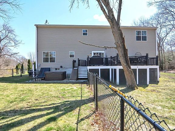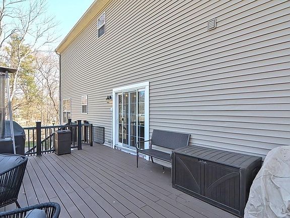 Gorgeous oversized young colonial on a private wooded lot at the end of a cul de sac. Stunning NEW custom kitchen/ pot filler, granite,stainless, pantry and apron sink. Custom hardwoods throughout. Maintenance free exterior deck w/ hot tub and a doggie ramp overlooking a scenic fenced in yard. Whole house generator, irrigation system, oversized 2 car garage, shed, interior speaker system, pellet stove,gas fireplace and central A/C, Brand NEW Navien tank less boiler. Primary Bedroom has tray ceiling, custom wardrobe station, plus another closet, NEW beautiful primary bath w/water closet, whirlpool tub, glass custom shower, with his and hers vanities. Finished basement with wet bar and 1/2 bath, (sq footage not included). w/ a reservoir in the back area that is perfect for fishing and has many scenic trails. FIRST SHOWINGS AT THE O/H Sat and Sun 12-1:30pm, If any Offers due Tuesday 10am, Please make offers good till Wednesday 5pm.