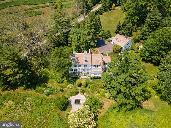 Welcome to Holly Springs, a delightful and private 14-acre sanctuary in the heart of Willistown Township. A winding drive and Allee of holly trees leads to the beautifully restored and expanded 4 bedroom 2 1/2 bath circa 1825 farm house, a detached two car garage with studio and 2 bedroom apartment on the second floor, and a 3-4 stall barn with work area, and hay loft. All the buildings, terraces and windows on the property overlook the spectacular grounds which are the result of a grand landscape master plan executed over the past 18 years creating and protecting a large meadow of native grasses and wildflowers, heritage hardwood trees, and the creation of gardens, bridges, woodland paths, and a small pond with gazebo. The majority of the property is enclosed with deer fencing and includes a gated entry with cattle guard. The current owners purchased the property in 2005 and embarked on an extensive and ambitious restoration project adding a new two story addition to the house including a large open kitchen with breakfast and family rooms, a mud room and half bath on the first floor and large primary suite with sitting room and deck overlooking the meadow and gardens on the second floor. They worked closely with Warren Claytor Architects and Mark Slouf (builder), to ensure that the new addition met today's lifestyle needs while maintaining the charming and historic character of the house and property. Many of the materials were reclaimed or made to look original to the house; antique reclaimed hardwood floors, exposed beams and country cabinetry. The original part of the first floor includes the entrance hall which opens to the living room and dining room on either side, each with a fireplace, original floors and millwork. The dining room opens to the newer kitchen, family room, breakfast room, mudroom and powder room. A solarium was added off the front hall and can also be accessed from the family room; it takes full advantage of the southern exposure and offers stunning views. The original staircase in the entrance hall leads to the second floor which includes 3 original bedrooms and a hall bath and, the large, newer primary suite including, a dressing room, bath with vanity, tub and shower, large bedroom and sitting room and French doors leading to a deck overlooking the property. The attic is walk up, floored and offers great storage. The basement is full, unfinished and includes ample storage, a hot tub, outside entrance and what was the original “summer kitchen”, with fireplace and bake oven, and a springhouse, which continues to provide water for the home. Holly Springs is named for the multiple springs flowing around the home and was initially part of the Brassey Tract that was purchased by Thomas Brassey from William Penn, and later divided into 3 tracts. The now 14 acre property is protected with a conservation easement through Willistown Conservation Trust and is surrounded by many other protected properties. There are equestrian opportunities on the property & easy access to trails. Holly Springs is the quintessential country property allowing for total privacy and ideally located in the coveted Radnor Hunt area; yet minutes from the Main Line, West Chester; connections to all major roadways, the Philadelphia International Airport, Brandywine airport, R5 Rail Service, Amtrak and highly rated educational Institutions.