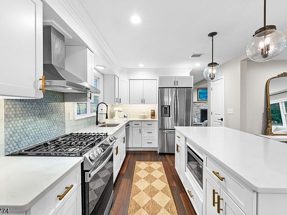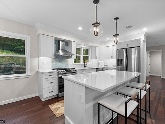 Beautiful Colonial located on a quiet cul-de-sac in the highly sought-after Nestling Wood neighborhood of Long Valley. This spacious home offers 5 bedrooms and 3 full baths, including a first-floor bedroom and bath, set on .72 acres. The open floor plan highlights a family room, dining area, and updated kitchen with stainless steel appliances, quartz countertops, center island breakfast bar, and chimney-style range hood. Recently cleared trees bring in abundant natural light, paired with brand-new custom tile and bamboo hardwood floors throughout. A formal living room with a masonry wood-burning fireplace adds charm and warmth. Also enjoy top-rated Long Valley schools, thriving youth sports programs, scenic parks, and the Columbia Trail. Enjoy local favorites like The Coffee Potter, nearby farms, and easy access to shopping and dining in Chester and Hackettstown all in one of Morris County's most desirable communities. OFFERS DUE BY 5:00PM ON TUESDAY SEPTEMBER 16TH.