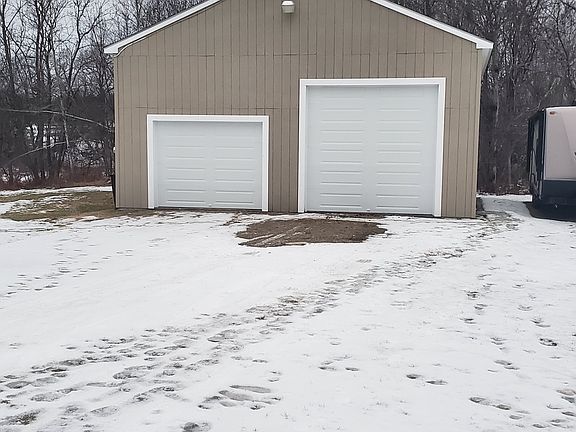 Beautiful county living surrounds this one level living home. Come sit on the front porch or enjoy the back yard. Plenty of room to roam inside and out! Walk into the basement level and enjoy the partially finished area including small kitchen area and living room with pellet stove. Other area can be finished as well. The main level offers 3 bedrooms with one currently used as an extra large laundry room. But, there are still hookups in the basement. Kitchen, dining and living room are somewhat of an open concept. Extra large garage with one garage door being larger for tall vehicles. Don't wait! Schedule your viewing today!